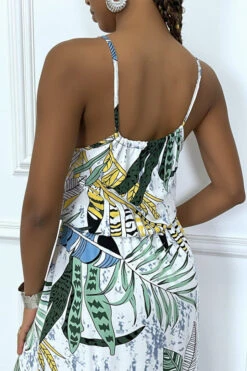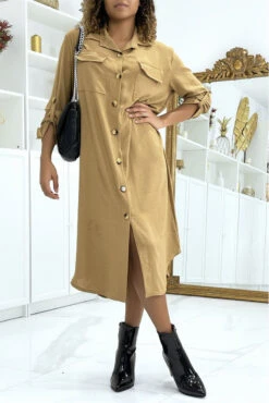 Robe chemise bleu à volant et boutons, froncé sur 2 endroits et manches longues en voilage